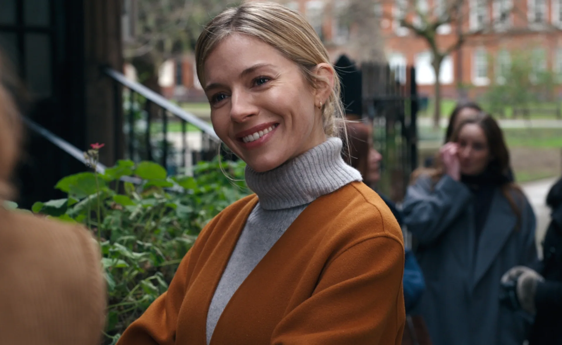 That story would definitely be set in Autumn—as Sienna Miller’s costuming proves, turtlenecks, overcoats and knitwear is a foolproof combo for the cooler months ahead.