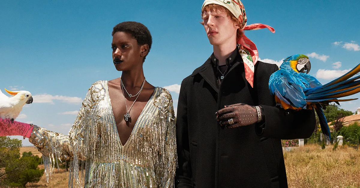 Building on Gucci’s signature fascination with the natural world, the new season story ‘Gucci Gothic’ is based around a rural community where animals and people co-exist in harmony. With a nod to the idea of a fantastical petting zoo, the creative direction captures the Gucci tribe feeding and interacting with their animal companions.