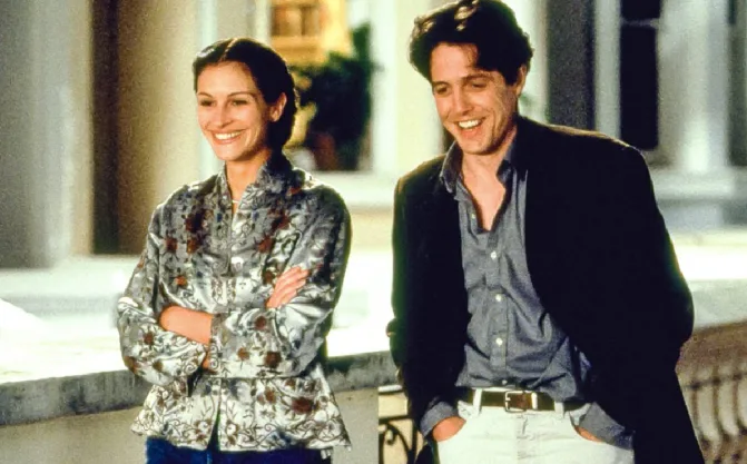 In the classic film Notting Hill, Hugh Grant plays London bookstore owner Will Thacker, who meets the glamorous American actress Anna Scott (played by Roberts). The two then form an unlikely romance but struggle to navigate Scott’s fame and subsequent media attention. But against all odds, the couple end up happily married with a child.