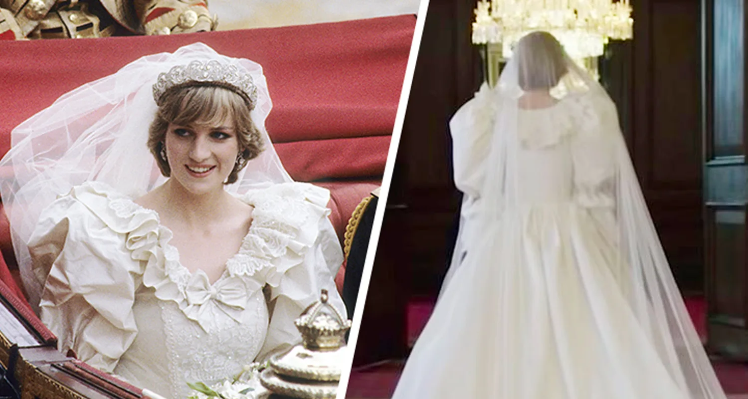 With the latter, the final scene from the trailer offers a glimpse of Diana in her wedding dress, ready to walk down the aisle. However, The Crown‘s version of the wedding ensemble is an impressive replica of the real-life original, which was designed by David and Elizabeth Emanuel and paired with a 153-yard veil.