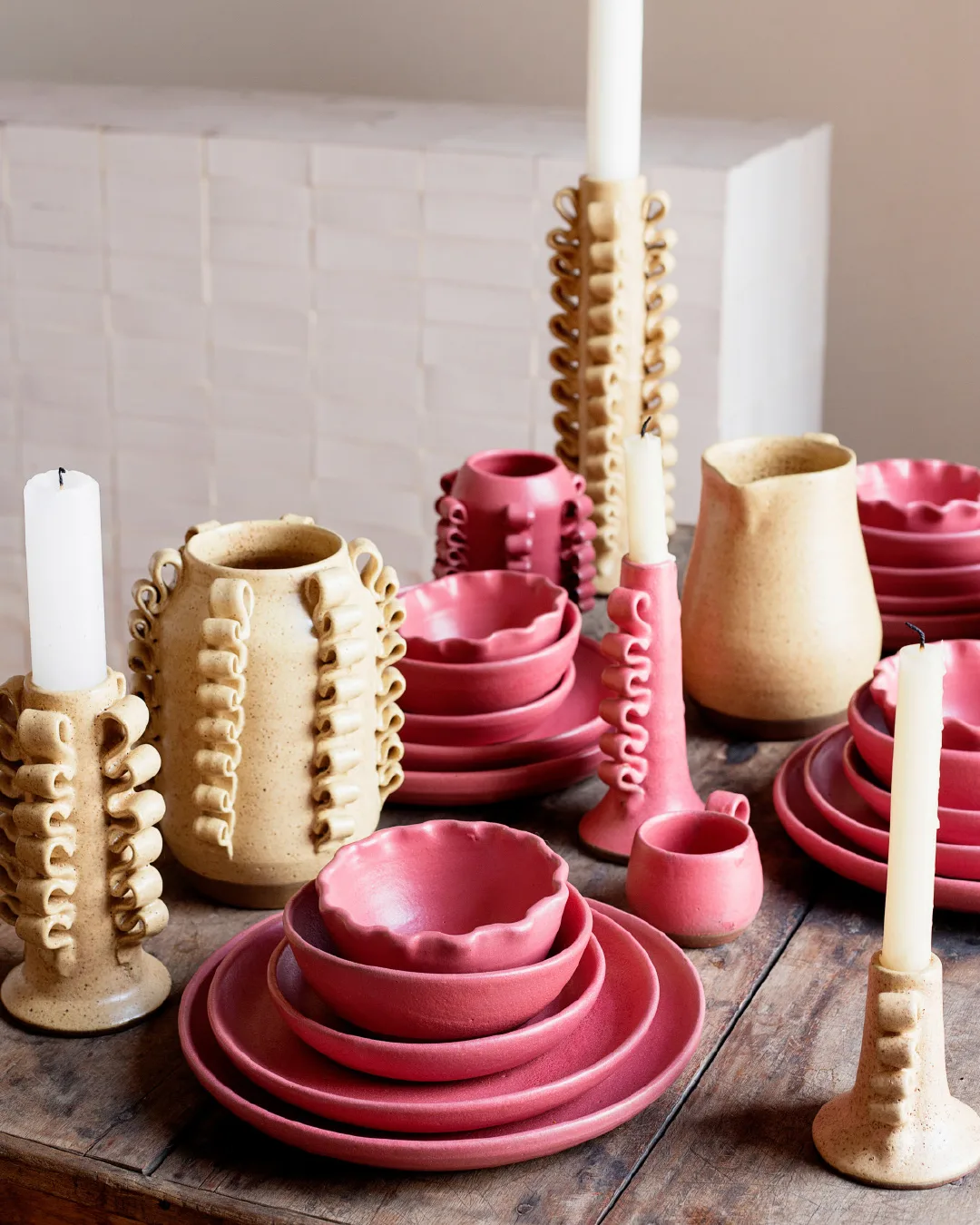 After years living between Paris and Brussels, Mexican potter Perla Valtierra returned home. Having studied at the National Autonomous University of Mexico, then the Belgian art school La Cambre, she’s always been fascinated by travel, crafts and ceramics in particular. It was in Japan, thanks to a research grant, that “everything became clear. It changed my perception of my practice,” she says, referring to how she embraced the Japanese art of kintsugi, which honours the beauty of imperfection through the repair of broken ceramics. It’s a revelation that defines her style and anchors her in the utilitarian object she reveres. “I love handling the objects I create; I develop rituals with each one.”