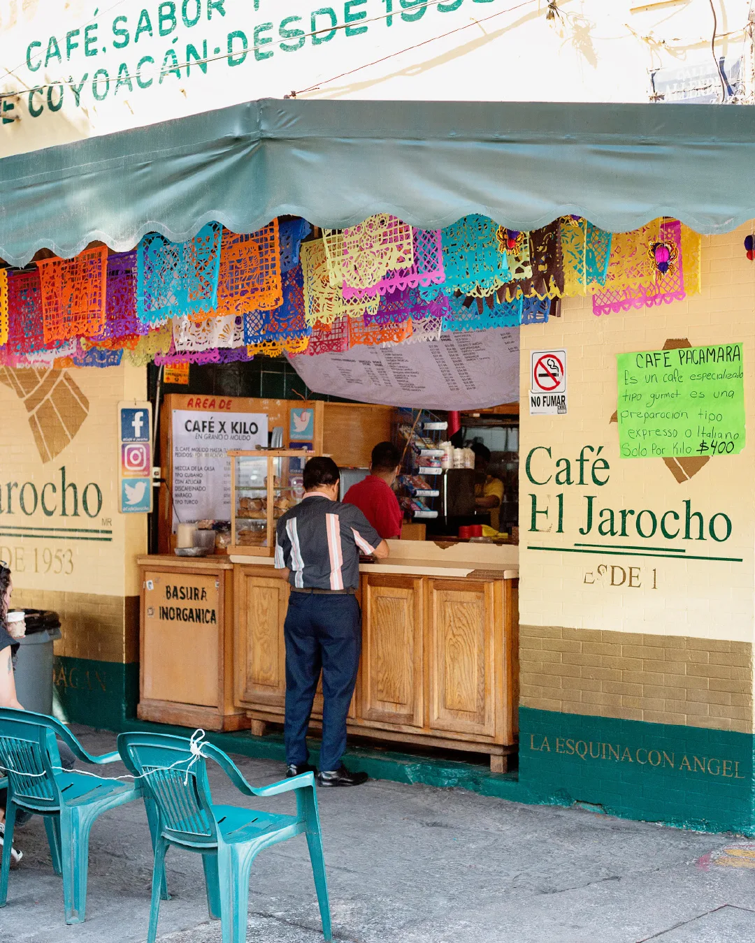 A classic in the Coyoacán neighbourhood. Order a café de olla (spiced coffee cooked with cinnamon and dark brown sugar) and enjoy it sitting on a plastic chair on the sidewalk, just like the locals do. Cuauhtémoc 134, Col. Del Carmen, Coyoacán