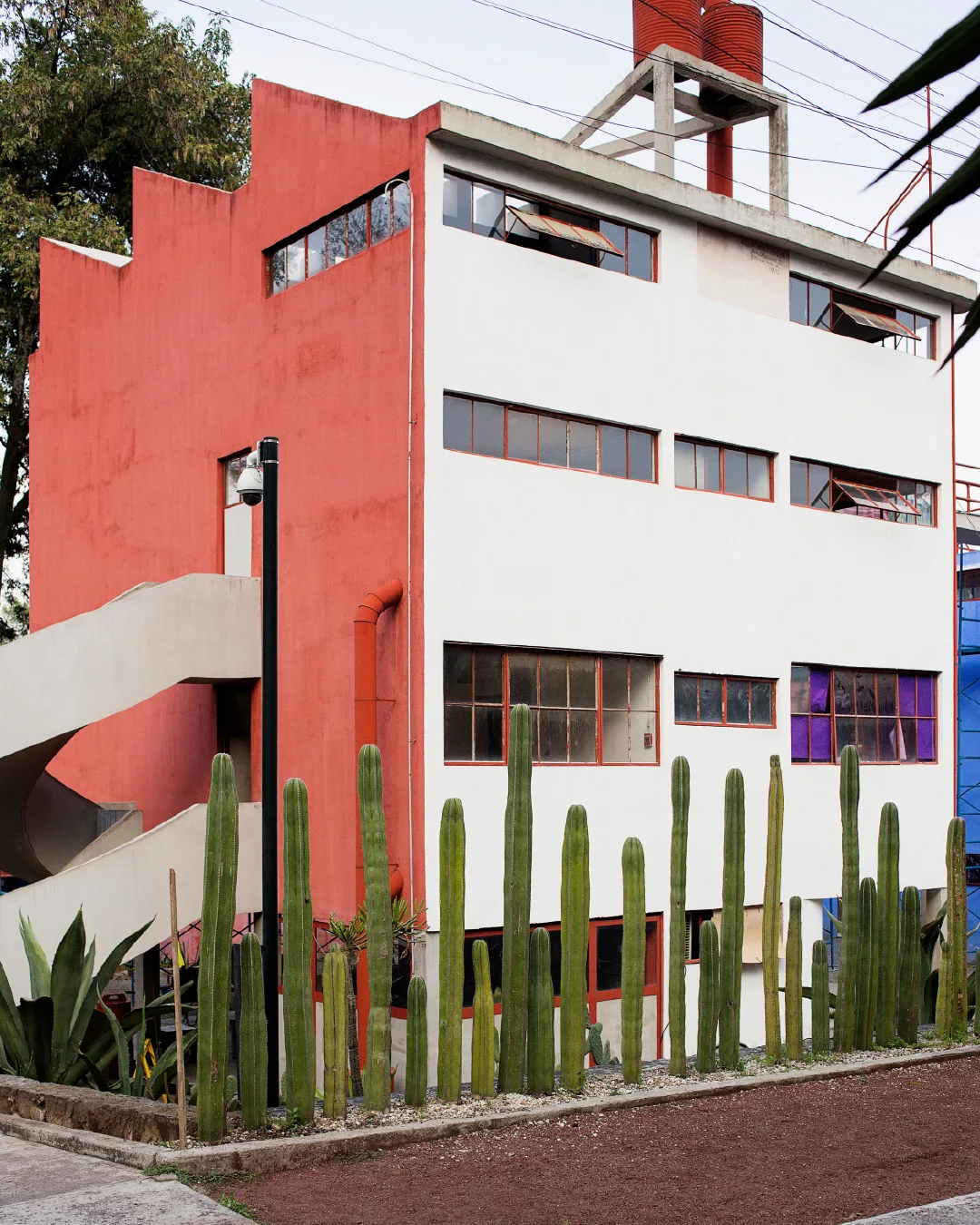Designed by the couple with architect Juan O’Gorman from 1929 to 1931, this house-studio is a colourful feast for the eyes. As the only barrier to the street, a row of cacti blurs the boundary between interior and exterior spaces. Diego Rivera, Col. San Ángel Inn, Álvaro Obregón